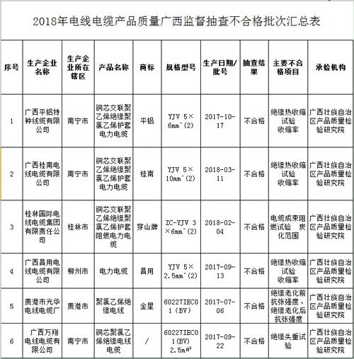 日前,廣西壯族自治區質量技術監督局在官網上發布通報,對包含化肥、塑料管件、電線電纜等在內的8種產品的質量監督檢查狀況進行了通報。其間抽檢了43家企業出產的66批次電線電纜產品,其間6批次不合格,不合格產品檢出率為9.1%。